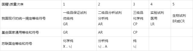 化學(xué)試劑等級(jí)